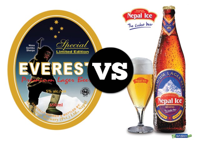 One important thing to take into account is the relative strengths of the beers. Everest is 5% (and the figure on the label is a Sherpa) whilst Nepal Ice comes in at a whopping 7% and although gorgeous, needs treating with respect. Gorkha Beer is also a very respectable alternative to Everest.