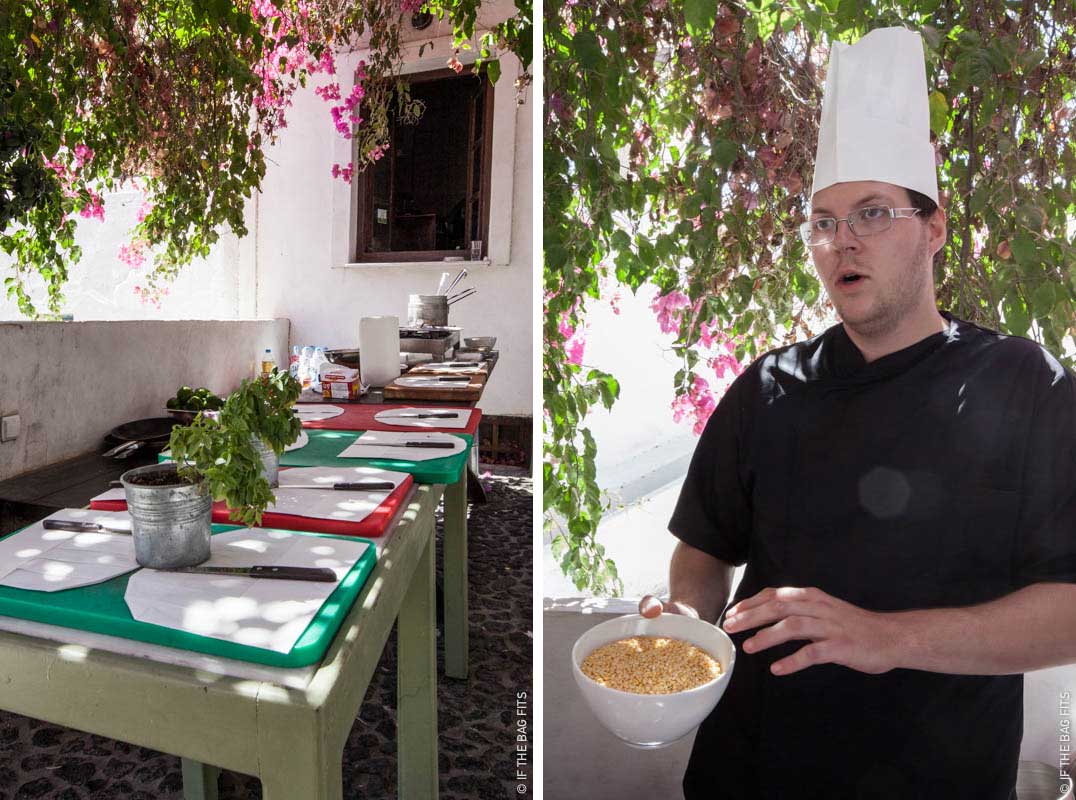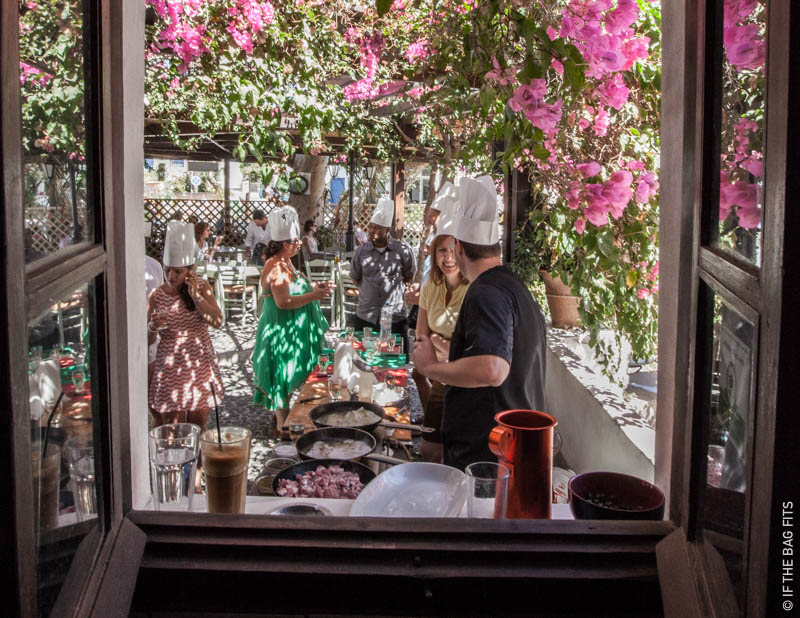 We walked up to Raki that morning and were instantly charmed by the outdoor setting prepared for the class. Several other tourists had signed up too and we had a chance to chat over a Frappe before the chef was ready for us to start.